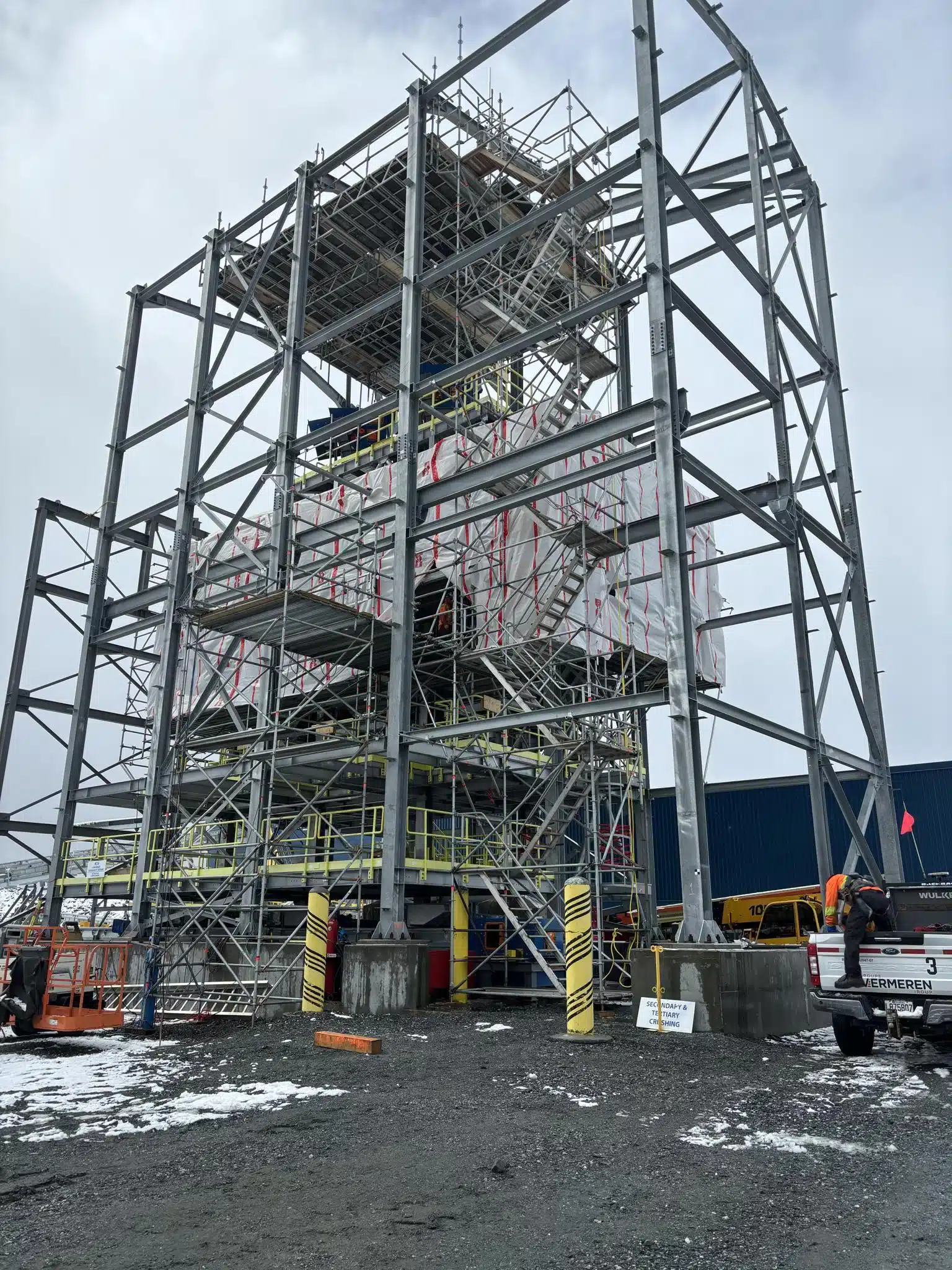 Nous sommes heureux de collaborer avec Fournier Industries à un projet de remise en marche du chantier de construction de la mine Nemaska Lithium. Échafaudage Vermeren fournit l’échafaudage nécessaire pour l’intérieur et l’extérieur du concasseur de la mine. Au total, 10 employés sont déployés à la Baie-James sur une durée de 6 mois pour exécuter le projet.